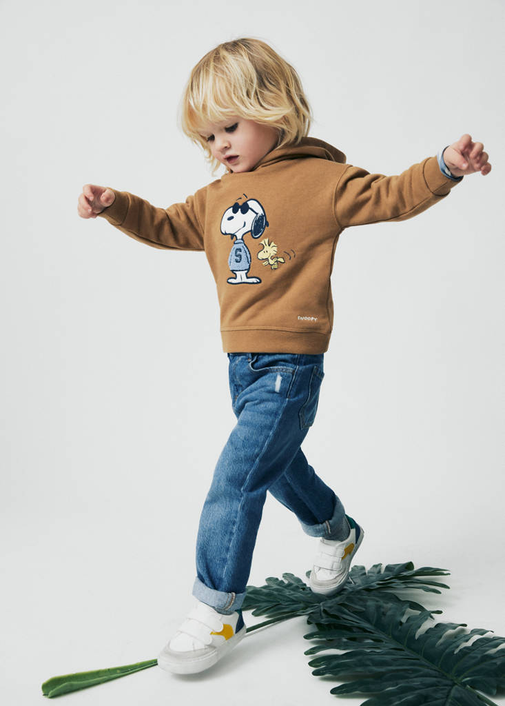 100% βαμβάκι. Κεντημένο ύφασμα. Τύπωμα Snoopy. Κουκούλα. Μακρύ μανίκι. Χωρίς κλείσιμο