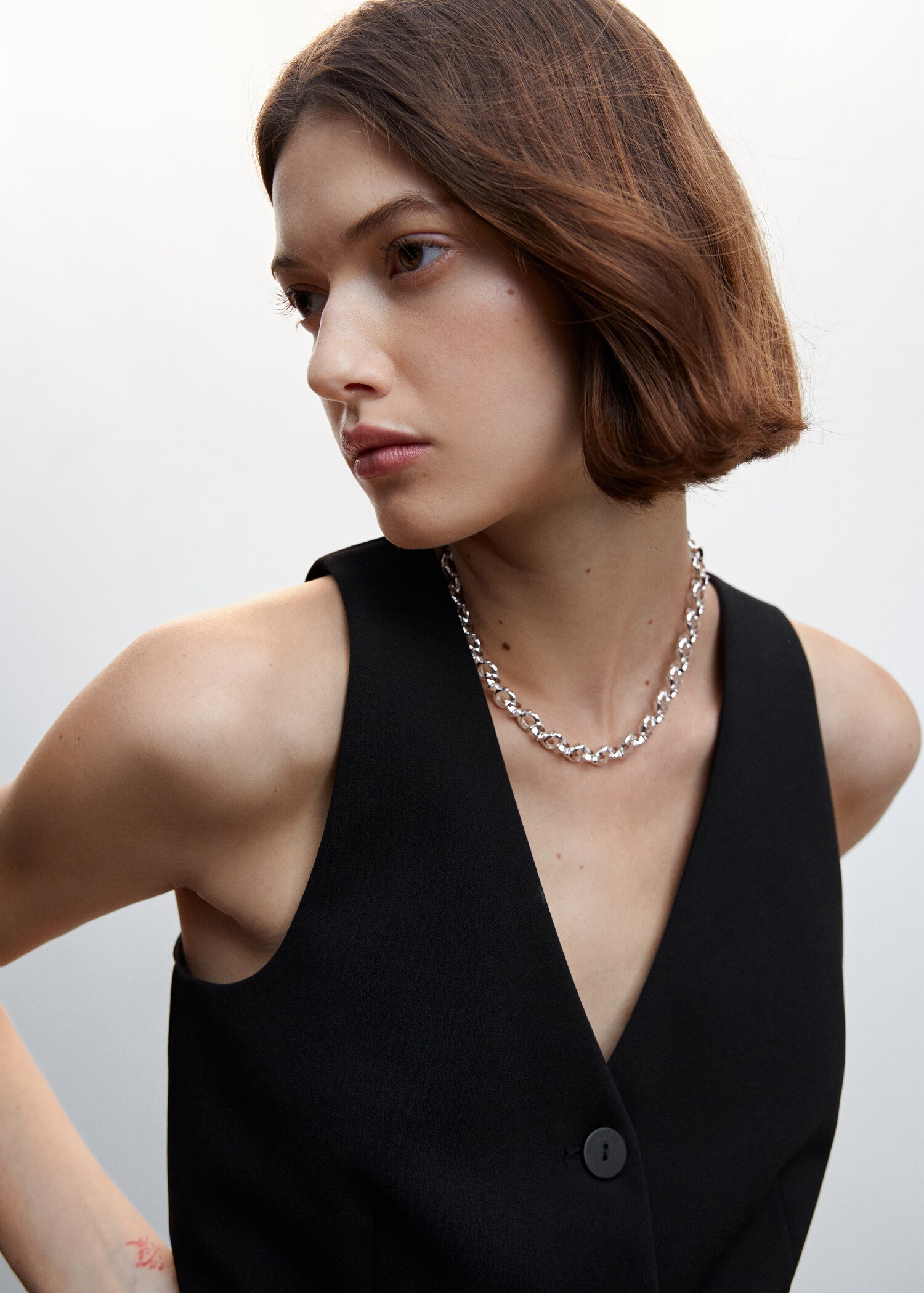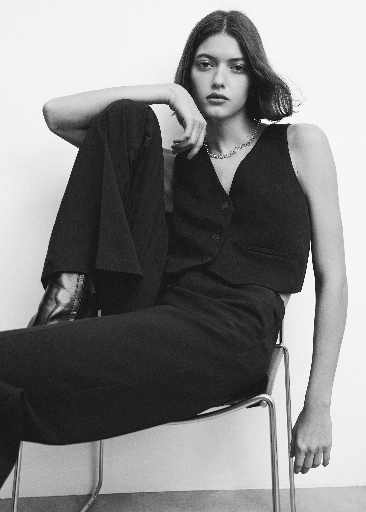 Ύφασμα πλεκτό. Στενό σχέδιο. Κοντό σχέδιο. Στιλ κουστούμι. Λαιμός βε. Χωρίς μανίκια. Διακοσμητικές τσέπες. Κλείσιμο με κουμπιά μπροστά. Εσωτερική φόδρα. Κολεξιόν πάρτι και εκδηλώσεις. Festival Season.