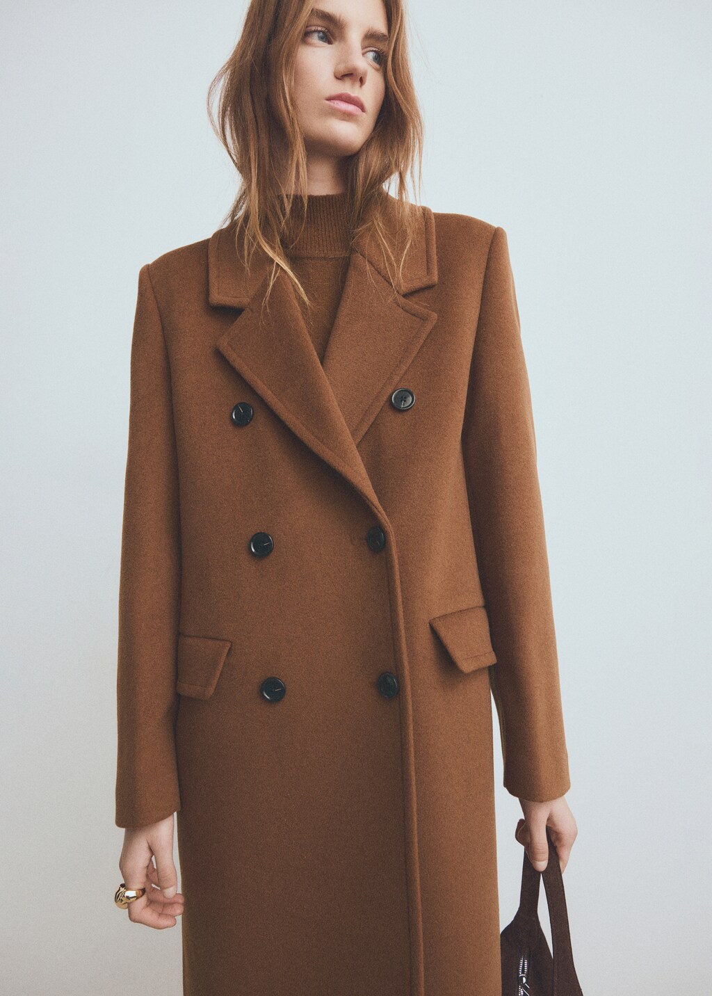 Φτιαγμένο από ύφασμα σε μίξη μαλλιού, αυτό το μακρύ και ίσιο σχέδιο διαθέτει μια κομψή λαιμόκοψη V με πέτο και εγκοπή. Περιλαμβάνει μακριά μανίκια με κουμπωτές μανσέτες, δύο μπροστινές τσέπες με καπάκι και κλείσιμο με διπλή σειρά κουμπιών. Διαθέσιμο σε μεγέθη Plus