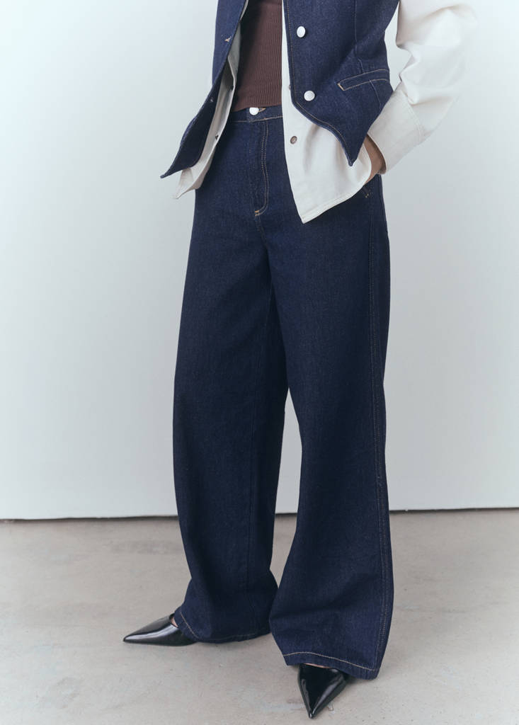 Βαμβακερό ύφασμα σε στυλ τζιν καουμπόι. Σχέδιο wideleg. Rinse wash. Φαρδιά γραμμή. Μακρύς σχεδιασμός. Μεσαίο ύψος. Θηλιές ζώνης. Πέντε τσέπες. Κλείσιμο μπροστά με φερμουάρ και κουμπί. Total look