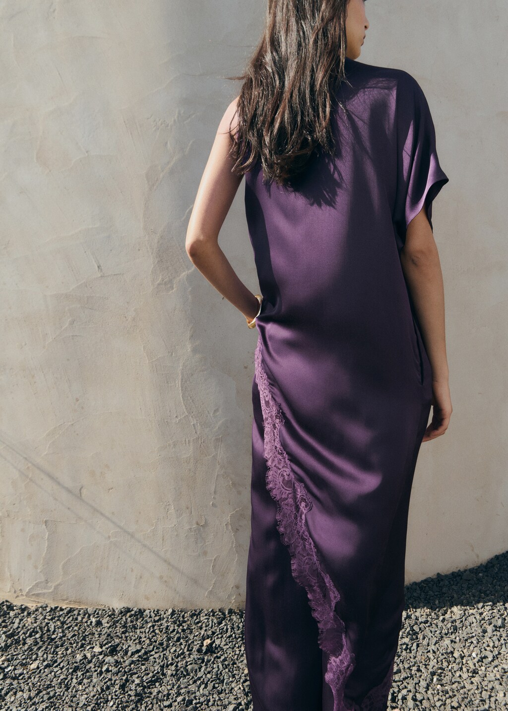 Σατέν ύφασμα. Ασύμμετρο σχέδιο. Μακρύς σχεδιασμός. Λεπτομέρεια δαντέλα. Στρογγυλή λαιμόκοψη. Κοντό μανίκι. Ασύμμετρα μανίκια. Ασύμμετρο τελείωμα. Κλείσιμο με φερμουάρ στο πίσω μέρος. Total look. Αυτό το ένδυμα ανήκει στη συλλογή μας για πάρτι και εκδηλώσεις, σχεδιασμένη για να αναβαθμίσει τις εμφανίσεις σας σε ειδικές περιστάσεις.