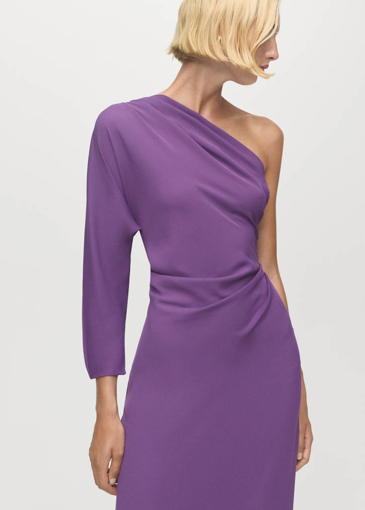 Μίντι σχέδιο. Στενή γραμμή. Ασύμμετρος γιακάς. Ασύμμετρα μανίκια. Μακρύ μανίκι. Σούρα στο πλάι. Λεπτομέρεια cut out. Πλαϊνό κλείσιμο με φερμουάρ. Αυτό το ένδυμα ανήκει στη συλλογή μας για εκδηλώσεις, σχεδιασμένη για να γίνετε η τέλεια καλεσμένη σε οποιοδήποτε πάρτι, γάμο ή τελετή