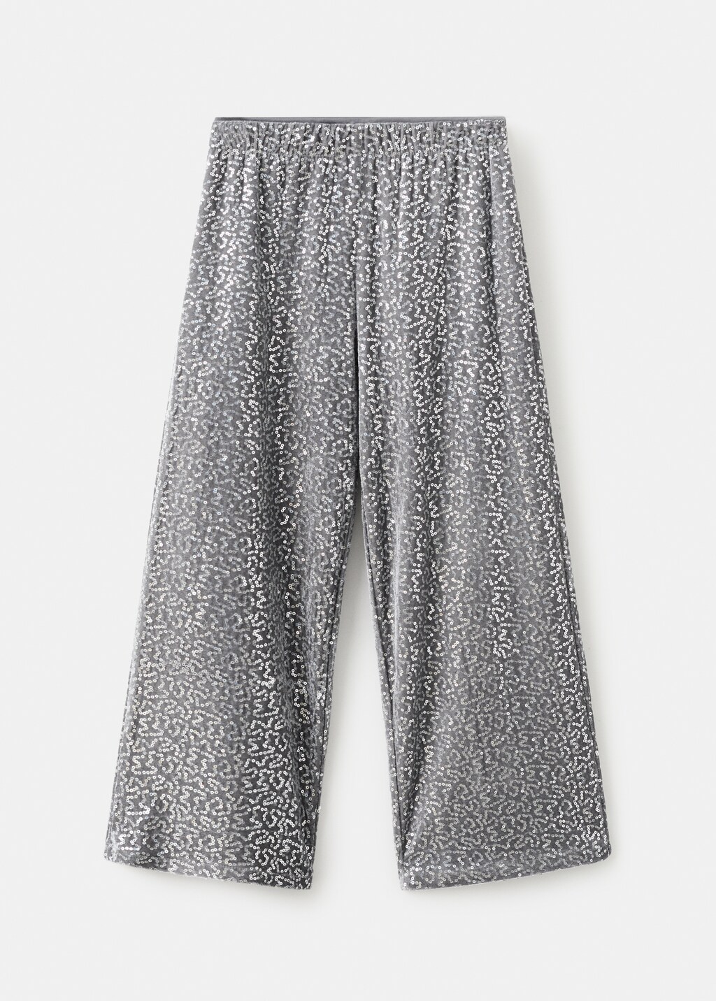 Ύφασμα με πούλιες. Ρευστό ύφασμα. Μακρύ σχέδιο. Σχέδιο culotte. Ρυθμιζόμενη μέση με λάστιχο. Ολοκληρωμένο look. Συλλογή Χριστουγέννων. Κολεξιόν για πάρτι και εκδηλώσεις.