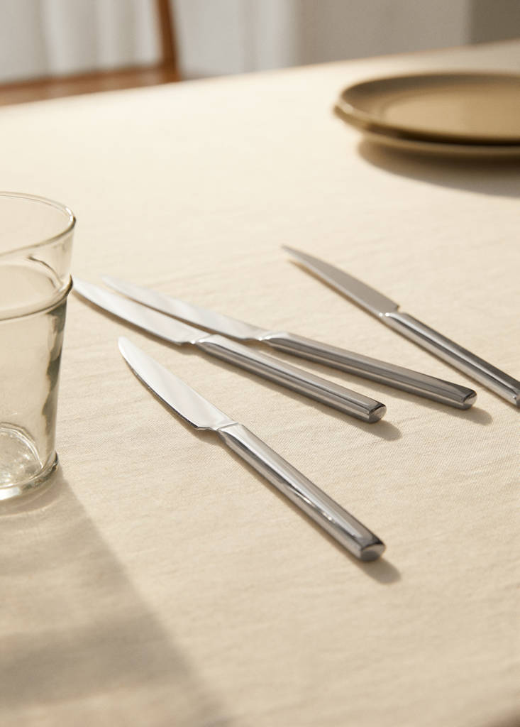 Μαχαιροπίρουνα. 100% ανοξείδωτο ατσάλι. Εργαλεία κουζίνας. Ακατάλληλο για φούρνο μικροκυμάτων. Πλένονται στο πλυντήριο πιάτων. Ολοκληρώστε με άλλα προϊόντα της κολεξιόν. Πακέτο με τέσσερα κομμάτια