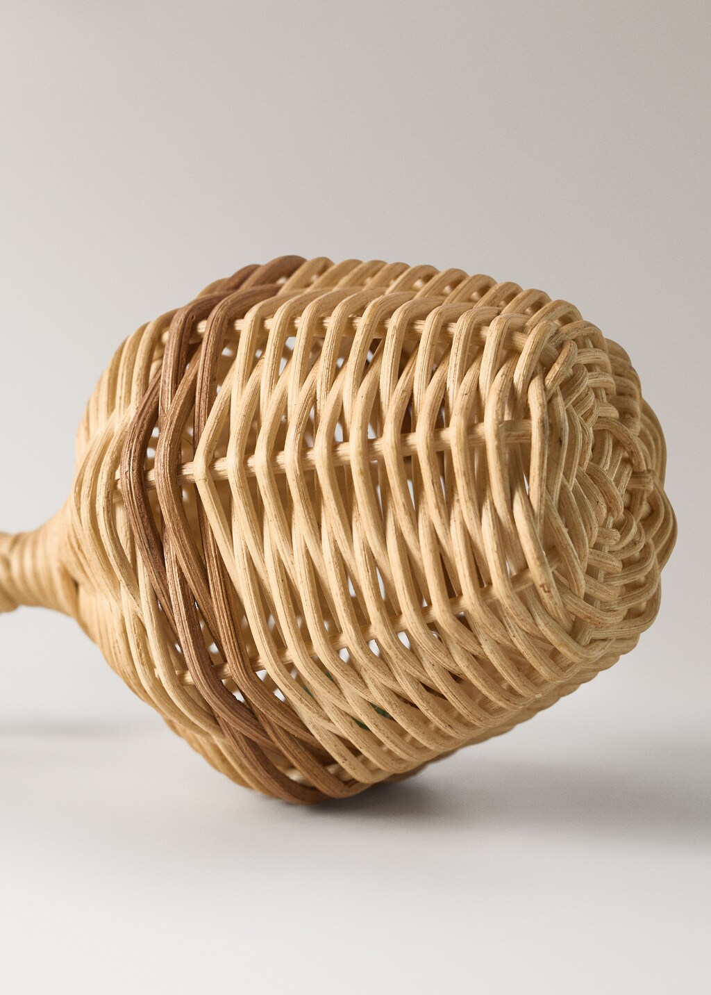 100% ρατάν. Διαστάσεις: 7x18cm. Παιδική κουδουνίστρα από φυσικό ρατάν, ελαφριά και εύκολη στο κράτημα από τα μικρά χέρια, με απαλό ήχο που διεγείρει το αισθητηριακό παιχνίδι του μωρού.