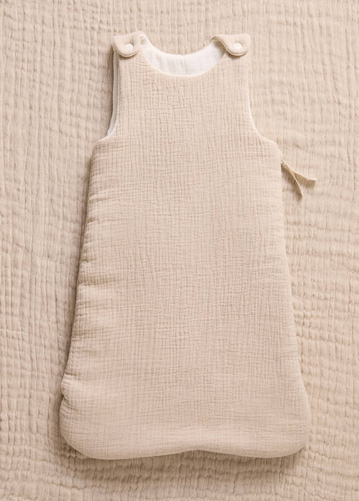 100% Βαμβάκι. Ύφασμα σιφόν. Παιδικός υπνόσακος περιπάτου από βαμβακερή γάζα, ένα υλικό απαλό, ελαφρύ και με εξαιρετική ικανότητα αναπνοής, ιδανικό για την ευαίσθητη επιδερμίδα των μωρών. Φερμουάρ στο πλάι. Διαθέσιμη σε περισσότερα χρώματα