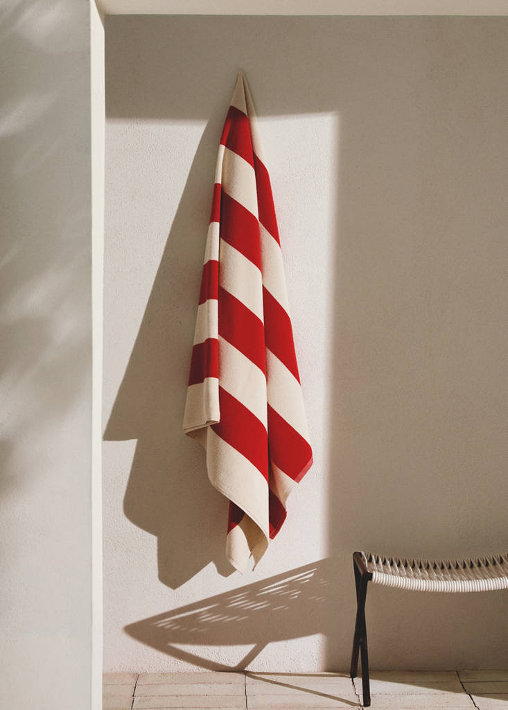 100% βαμβάκι πετσετέ. Μέγεθος: 100x180cm. Σχέδιο με ρίγες. Ύφασμα από βαμβακερό πετσετέ ύφασμα, απαλό στην αφή και απορροφητικό. Ιδανικό για την παραλία ή την πισίνα. Διαθέσιμη σε περισσότερα χρώματα