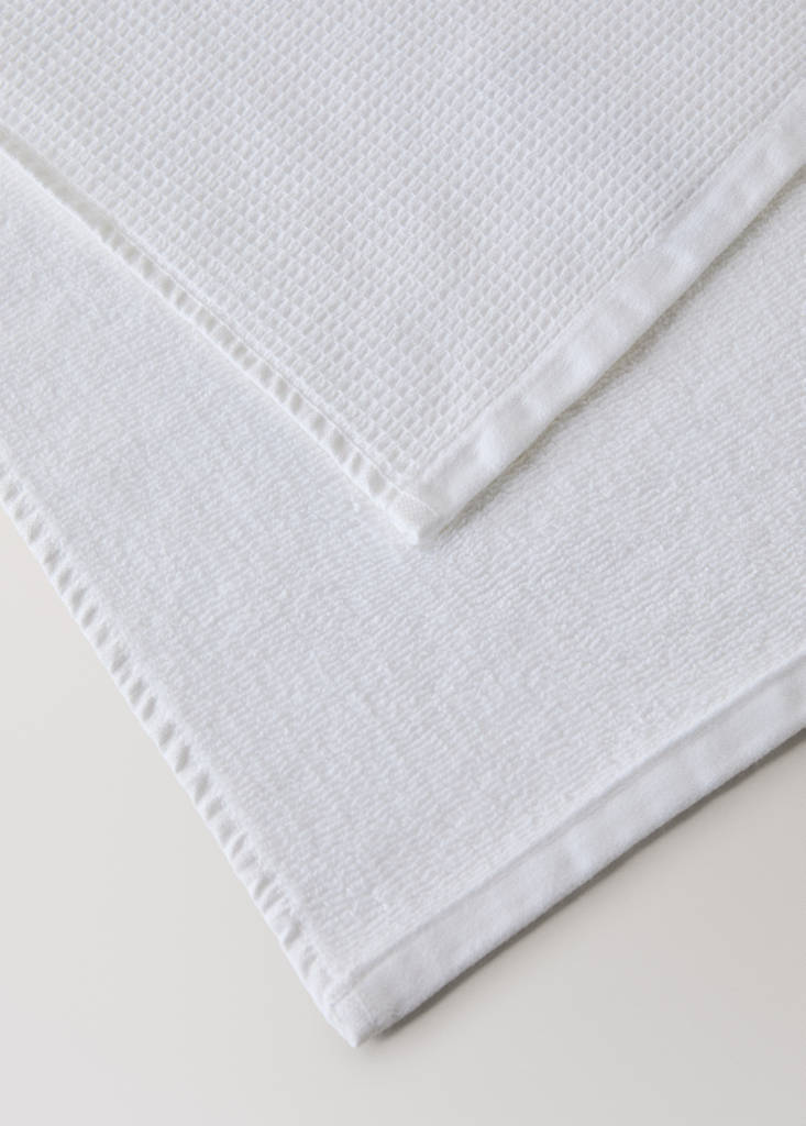 Πετσέτα χεριών. Μέγεθος: 30x50cm. Ύφασμα 100% βαμβάκι. Βάρος: 650 gr/m2. Σχέδιο με ρίγες. Διπλή πετσέτα με σχέδιο waffle στη μία πλευρά για μοντέρνα εμφάνιση, και πετσετέ στην άλλη για αποτελεσματική απορρόφηση και γρήγορο στέγνωμα. Ο κομψός σχεδιασμός της θα προσθέσει μια πινελιά εκλεπτυσμένου στυλ στο μπάνιο σας. Είναι ελαφριά, συμπαγής και στεγνώνει γρήγορα, ιδανική για κάθε περίσταση. Συνδυάζεται με περισσότερα αντικείμενα της συλλογής