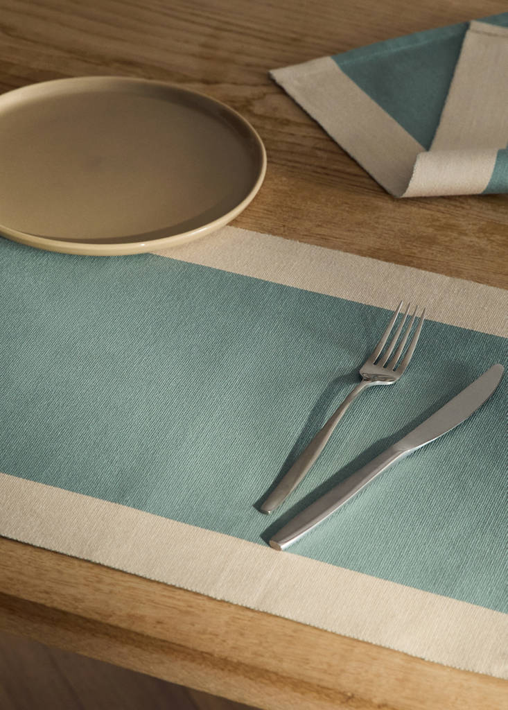 Συσκευασία 2 τεμαχίων. 100% Βαμβάκι. Μέγεθος: 35x50εκ. Βαμμένα νήματα. Σχέδιο με φαρδιά ρίγα. Πρόσθεσε μια χρωματιστή πινελιά στο τραπέζι σου σε κάθε περίσταση. Διαθέσιμο σε διάφορα χρώματα. Συνδυάζεται με την ασορτί τραβέρσα τραπεζιού