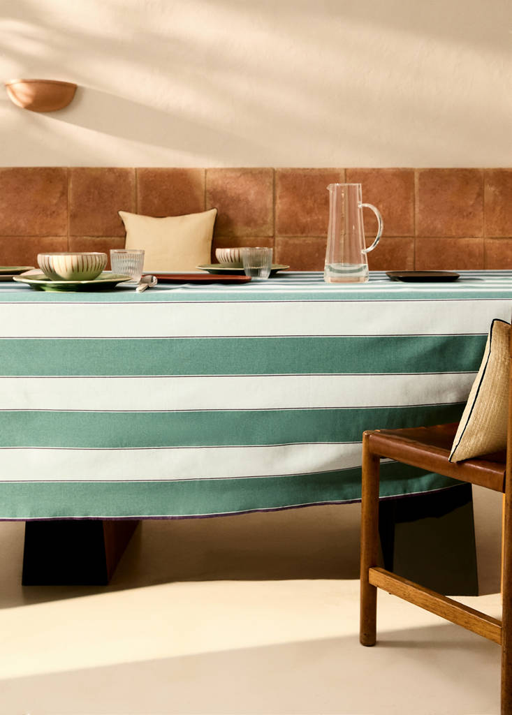 Βαμβακερό ριγέ τραπεζομάντιλο με ρητίνη για 2 έως 4 άτομαΙσχύουσα τιμή [29,99 € ]29,99 €Διάλεξε χρώμαΠράσινο ΜένταΕπιλέξτε το μέγεθός σας150x150cmΜη διαθέσιμο. Το θέλω!170x250cmΜη διαθέσιμο. Το θέλω!ΜέγεθοςΕπιλέξτε το μέγεθός σαςΠροσθήκη στα αγαπημέναΠροβολή lookΔωρεάν αποστολή σε κατάστημαΎφασμα 100% βαμβάκι. Διαστάσεις: 150x150cm. Για 2 έως 4 άτομα. Ριγέ εμπριμέ με ρητίνη. Διαθέσιμη σε δύο μεγέθη. Διαθέσιμο σε διάφορα χρώματαΛεπτομέρειες, σύνθεση και φροντίδαΔιαθεσιμότητα σε κατάστημα