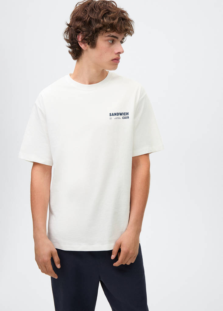 Ύφασμα 100% βαμβάκι. Ίσιο σχέδιο. Στρογγυλή λαιμόκοψη. Κοντά μανίκια. Τυπωμένο κείμενο στο στήθος. Σχέδιο τυπωμένο στο πίσω μέρος