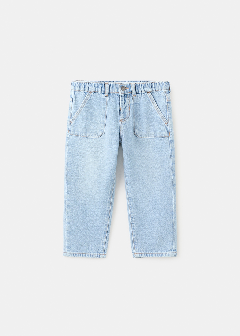 Straight-fit jeans with elastic waistCurrent price [17.99 € ]17.99 €Select a colourLight BlueSelect your size9-12 months (80cm)12-18 months (86cm)18-24 months (92cm)2-3 years (98cm)3-4 years (104cm)4-5 years (110cm)5-6 years (116cm)Size guideAddAdd to your wishlistFree delivery to storeSee availability in storeDescription100% cotton denim-style fabric. Straight Design. Long design. Belt loops. Elasticated waistband. Patch pockets. One press stud fastening.See detailsItem qualitiesRecycled cottonAt least 20%This fibre is obtained from pre- and post-consumer textile waste that is transformed into new fabrics.Share