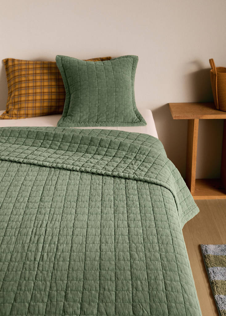Size: 180x250cm. 90cm Bed. Single bed. 100% Cotton. Quilted design. Check washed cotton. Washed cotton. Soft, relaxed aesthetic, matte finish, subtly crumpled. Combine with the matching cushion. Available in different colours. This product does not include pillowcases