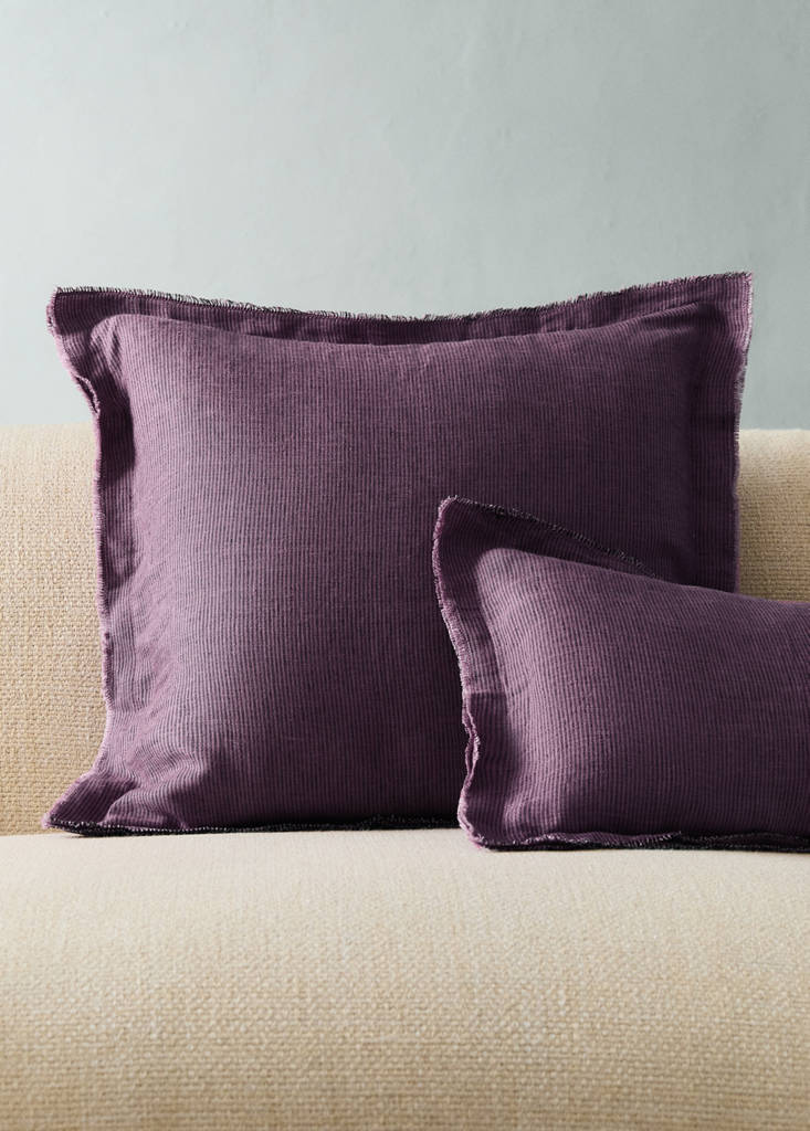 100% Linen. Size: 50x50cm. frayed finish. Its hand-stitched finish gives it a handcrafted touch with a subtle geometric design. Crafted from 100% linen, a high-quality material that offers durability and a texture that is soft to the touch. Ideal for everyday use. Zip closure. Available in different colours