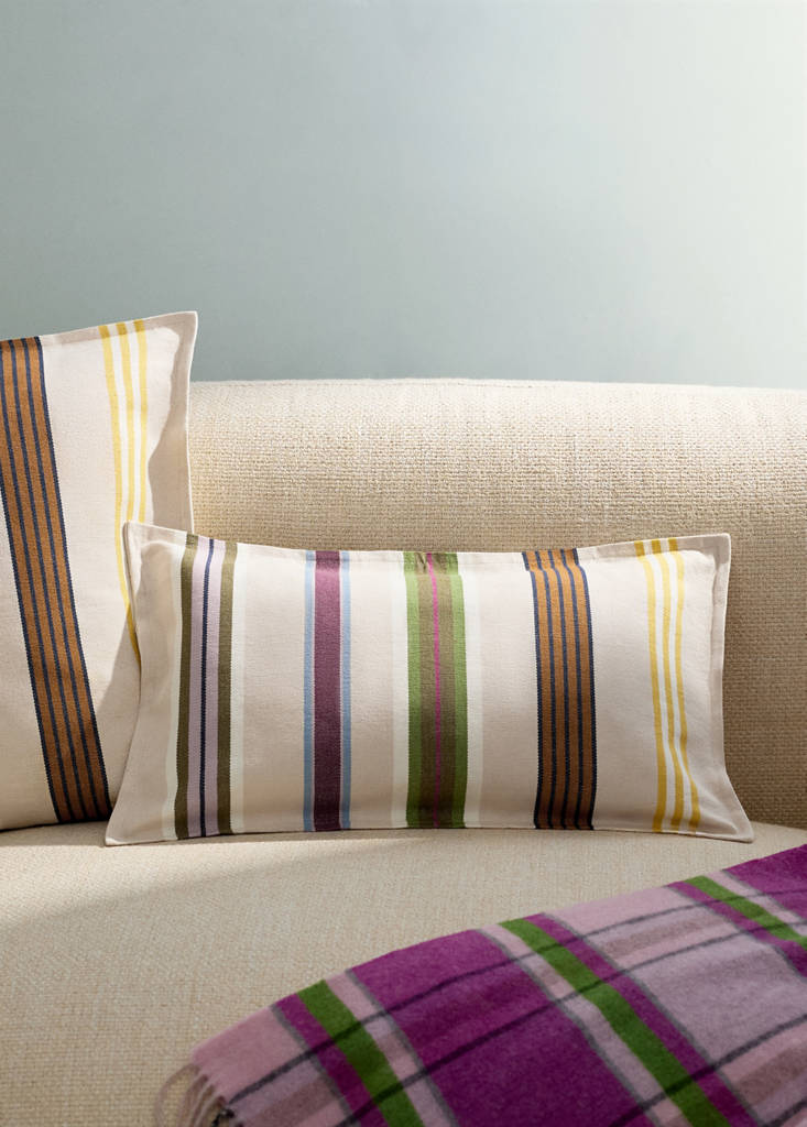 Multi-stripe cushion cover with piping 30x5 cmCurrent price [19.99 € ]19.99 €Select a colourGreenSelect your size30x50cm50x50cmSizeChoose your sizeAddAdd to your wishlistSee lookFree delivery to store100% Cotton. Size: 30x50cm. Stripe design. Zip closure. With flap. Multi-coloured stripe design. Available in two colours. Coordinates with more products from the collectionDetails, composition and careStore availability