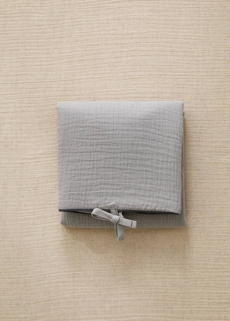 Made in PortugalPortable chiffon baby changing matInitial price struck through [22.99 € ]22.99 €Current price [11.99 € ]11.99 €-48%Select a colourGreySelect your sizeOne sizeNot available. I want it!Notify meAdd to WishlistSee lookFree delivery to storePortable changing table. 100% Cotton. Gauze fabric. Tie fastening. Combines functionality and eleganceDetails, composition and careStore availability