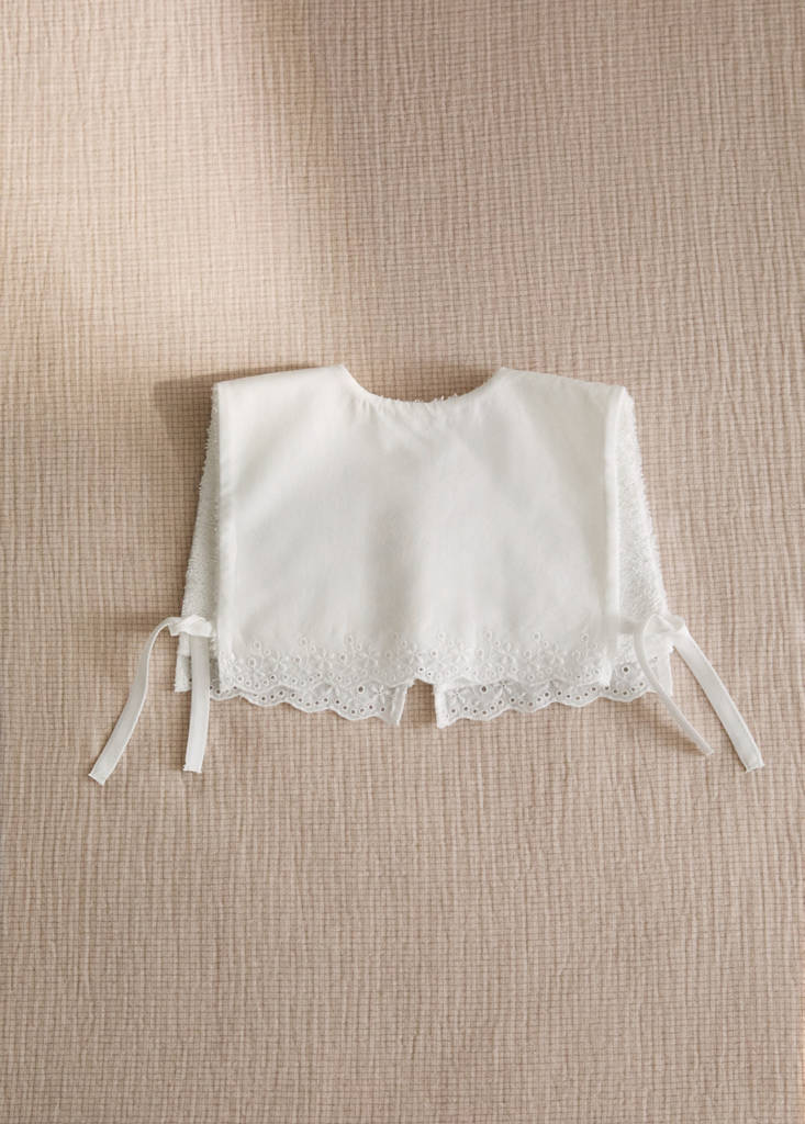 Cotton fabric. Terrycloth fabric. Short design. Round neck. Sleeveless. Button closure. Sleeveless. Side Tie Closures. Embroidered details
