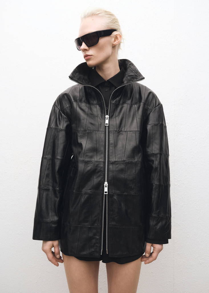 Oversized patchwork leather coat