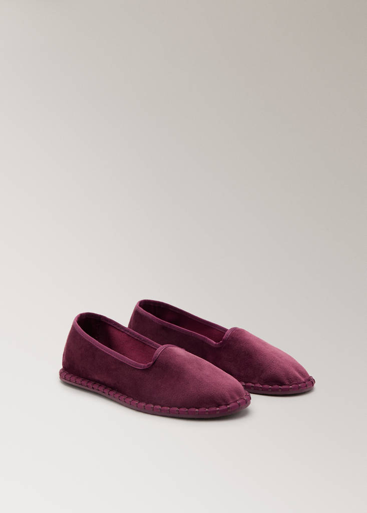Velour shoesCurrent price [29.99 € ]29.99 €Select a colourWineSelect your size363738394041Last few items!DimensionsAddAdd to your wishlistSee lookFree delivery to storeSlipper. Velour fabric. Provide comfort to enjoy your days at home. Available in different coloursDetails, composition and careStore availability