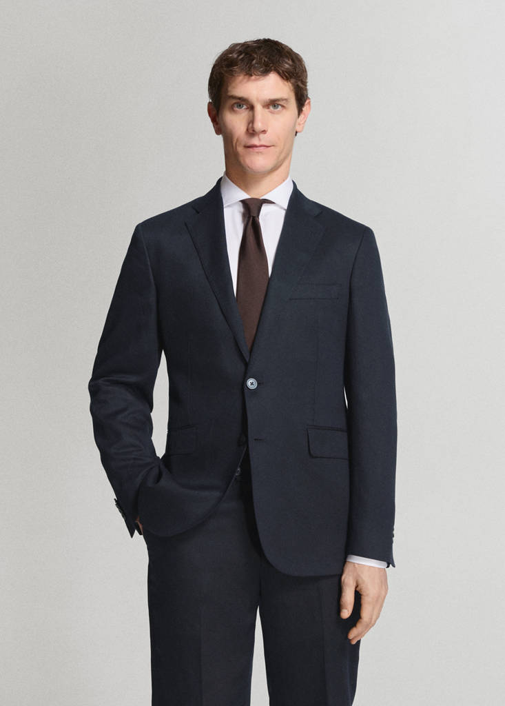 ESSENTIALS: Made to last. Tejido mezcla de lino. Slim fit. Solapas de muesca y ojal. Manga larga con puños abotonados. Bolsillo de ribete en el pecho. Dos bolsillos de solapa en la parte delantera. Bolsillos interiores. Cierre de dos botones. Forro interior