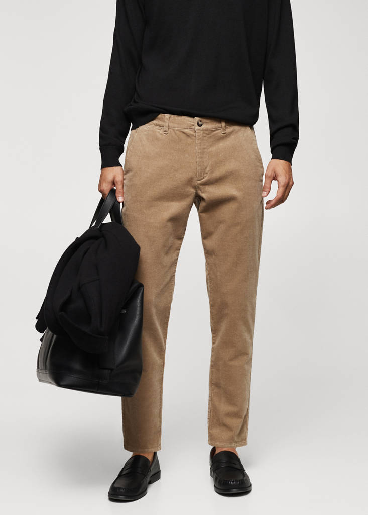 Slim fit. Tejido mezcla de algodón. Cierre de cremallera y botón. Trabillas para cinturón. Cintura con cordón interior ajustable. Dos bolsillos delanteros. Dos bolsillos de ribete con botón en la parte posterior. Tejido de micro pana. Diseño crop