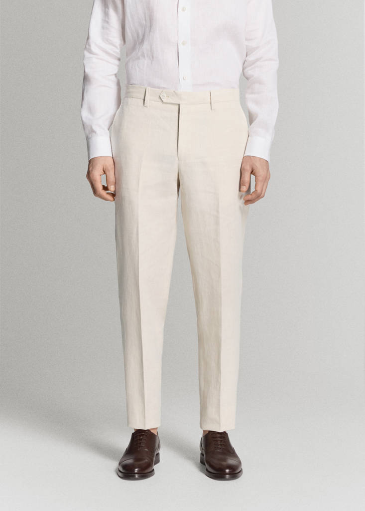 ESSENTIALS: Made to last. Slim fit. 100% Lino. Trabillas para cinturón. Cierre delantero de cremallera, gancho y doble botón. Dos bolsillos laterales. Bolsillo portamonedas. Dos bolsillos de ribete y botón en la parte posterior. Detalle de raya planchada en la parte delantera y trasera