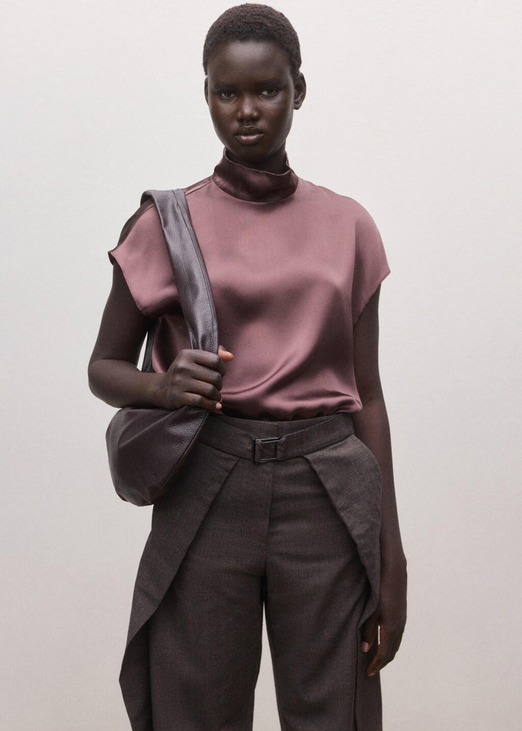 Tejido 100% de seda. Tejido con acabado satinado. Diseño recto. Cuello alto. Manga corta. Cierre de botones en la parte posterior. Colección Selection.