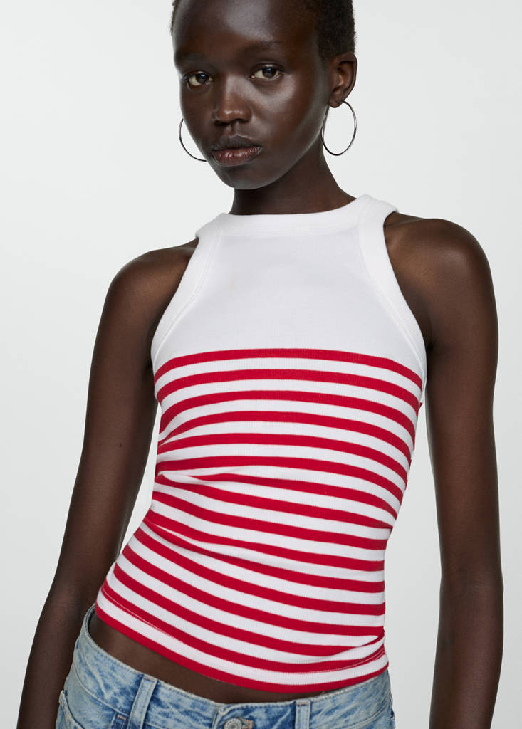 Top estampado rayasPrecio actual [Q 219.00 ]Q 219.00Selecciona un colorRojoLa modelo lleva la talla S y mide 178cm.Selecciona tu tallaXXSNo disponible ¡Lo quiero!XSNo disponible ¡Lo quiero!SNo disponible ¡Lo quiero!MNo disponible ¡Lo quiero!LNo disponible ¡Lo quiero!XLNo disponible ¡Lo quiero!XXLNo disponible ¡Lo quiero!MedidasAvísameAñadir a FavoritosVer lookEnvío gratis a tiendaTejido mezcla de algodón. Slim fit. Diseño recto. Estampado de rayas. Cuello redondo. Sin mangasDetalles, composición y cuidadosDisponibilidad en tiendaCualidades del artículoAlgodón recicladoAl menos 20%Esta fibra se obtiene a partir de restos textiles pre y post consumo que se transforman en nuevos tejidos.