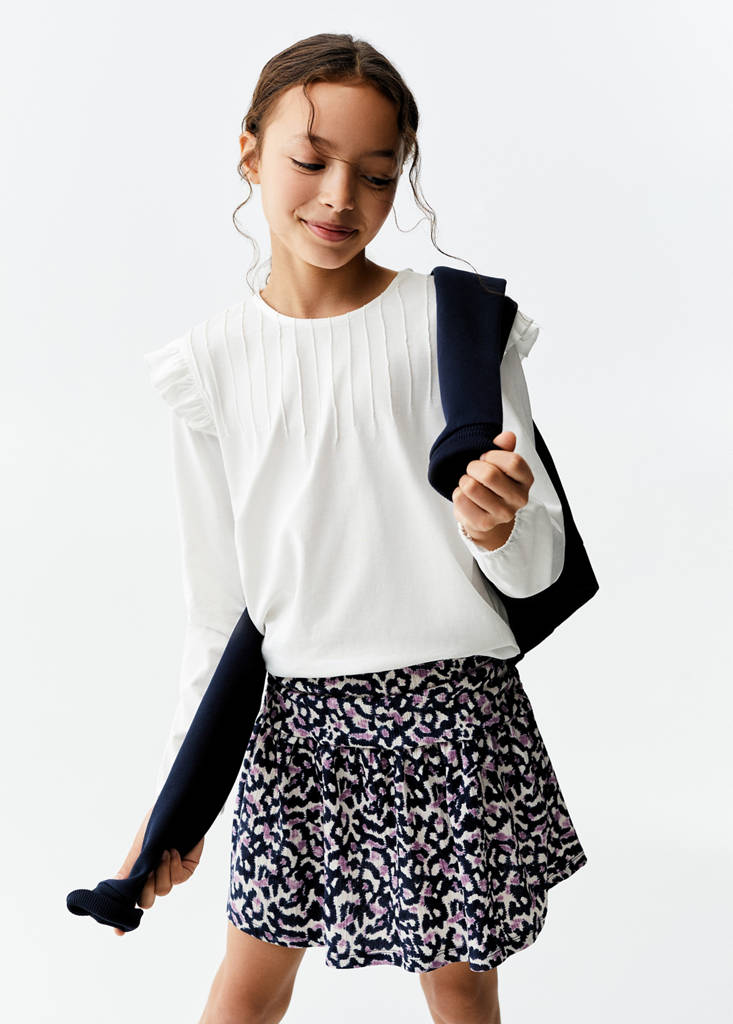 100% algodón. Diseño recto. Cuello redondo. Manga larga. Cierre de botón. Esta prenda también está disponible en la colección de Baby Girl. Detalle de volantes
