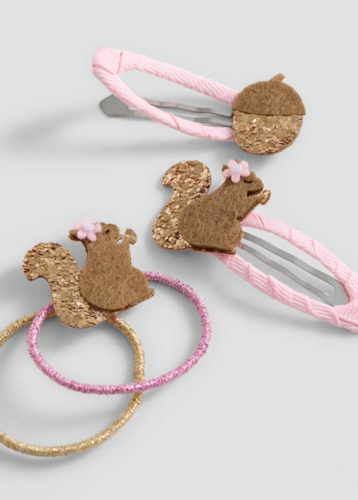 Pack pasadores y gomasPrecio actual [Q 89.00 ]Q 89.00Selecciona un colorRosa paloSelecciona tu tallaTalla únicaNo disponible ¡Lo quiero!AvísameAñadir a FavoritosVer lookEnvío gratis a tiendaPack de 4. Diseño ardillaDetalles, composición y cuidadosDisponibilidad en tienda