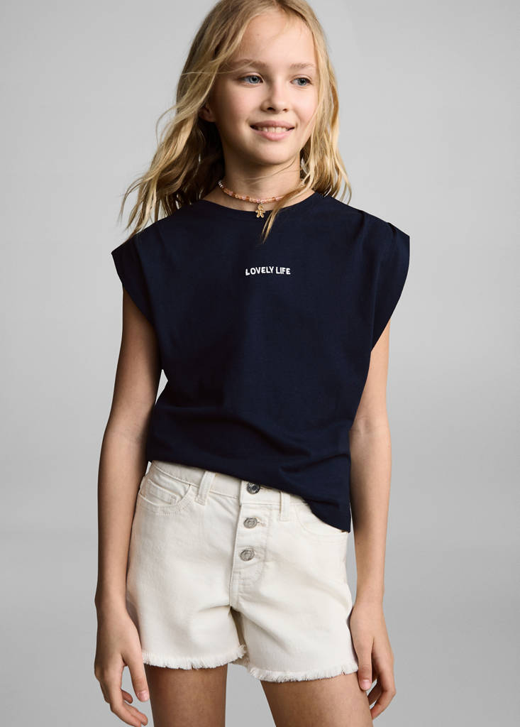 T-shirt with message and pleated shouldersCurrent price [HK$ 119 ]HK$ 119Select a colourDark NavySelect your size5-6 years (116cm)Not available. I want it!7-8 years (128cm)Not available. I want it!9-10 years (140cm)Not available. I want it!11-12 years (152cm)Not available. I want it!13-14 years (164cm)Not available. I want it!DimensionsNotify meAdd to WishlistSee lookConvenient home delivery100% Cotton. Straight design. Embroidered message the front section. Shoulders pleats. Round neck with ribbed finishDetails, composition and careStore availabilityItem qualitiesRecycled cottonAt least 20%This fibre is obtained from pre- and post-consumer textile waste that is transformed into new fabrics.