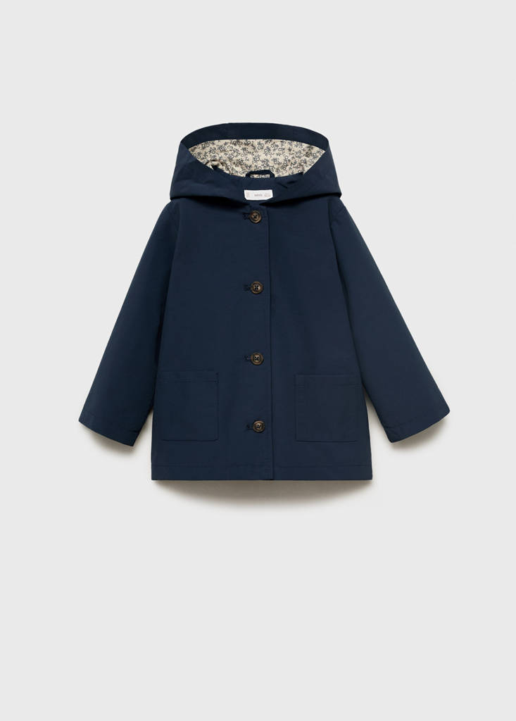 Tejido mezcla de algodón. Diseño recto. Capucha. Manga larga. Dos bolsillos delanteros. Cierre delantero con botones. Con forro interior. Etiqueta para datos personales