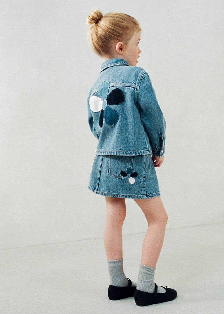 Confeccionada en tejido 100% algodón estilo tejano vaquero, esta prenda presenta un diseño recto y corto. Incluye cintura elástica, trabillas para cinturón, dos bolsillos delanteros y dos traseros. Detalle bordado de flor
