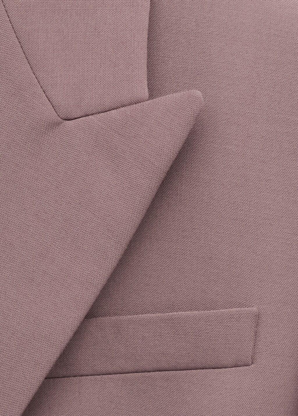 Tejido mezcla de lana. Estilo traje. Diseño recto. Cuello pico con solapa. Solapas con muesca. Manga larga con puños abotonados. Bolsillo de ribete en el pecho. Dos bolsillos de solapa laterales. Cierre de doble botonadura. Forro interior. Total look. Colección Selection.