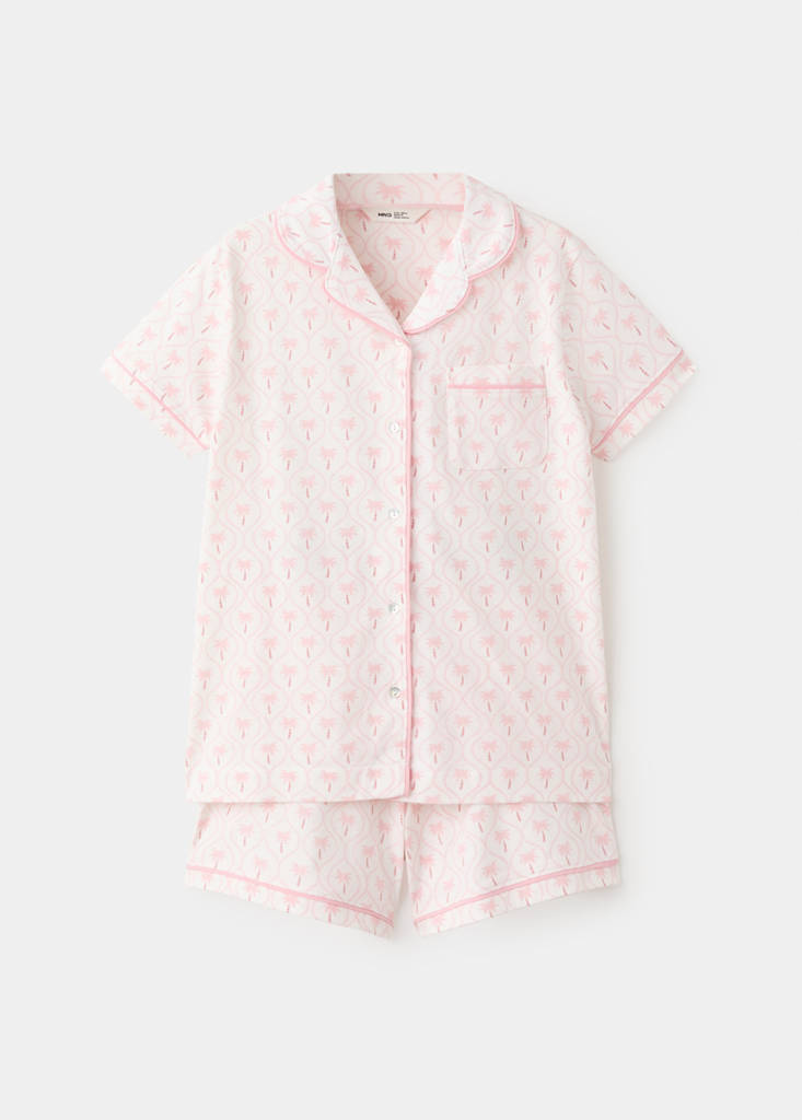 Pack de camiseta de manga corta y pantalón corto de pijama. Cuello camisero. Manga corta. Bolsillo en el pecho. Cierre delantero con botones. Pantalón corto. Cintura elástica. Estampado de palmeras