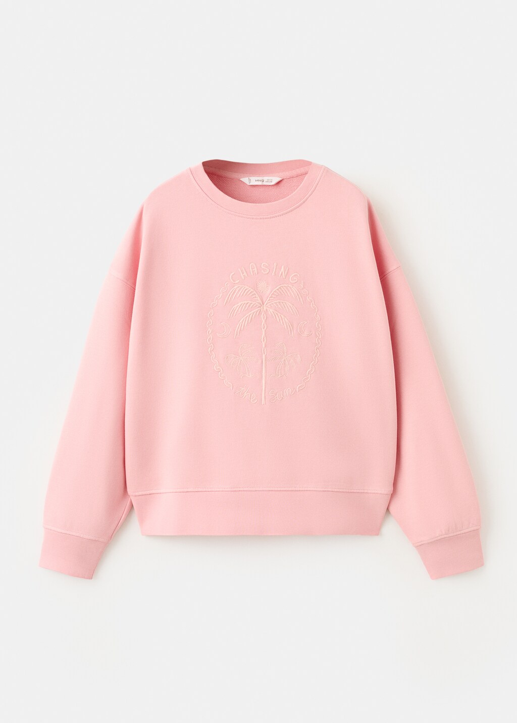Tejido de algodón. Diseño recto. Cuello redondo. Manga larga. Diseño bordado. Diseño palmeras.