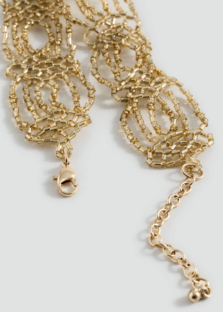 Estilo choker. Efecto malla. Panel abalorios. Cierre de gancho