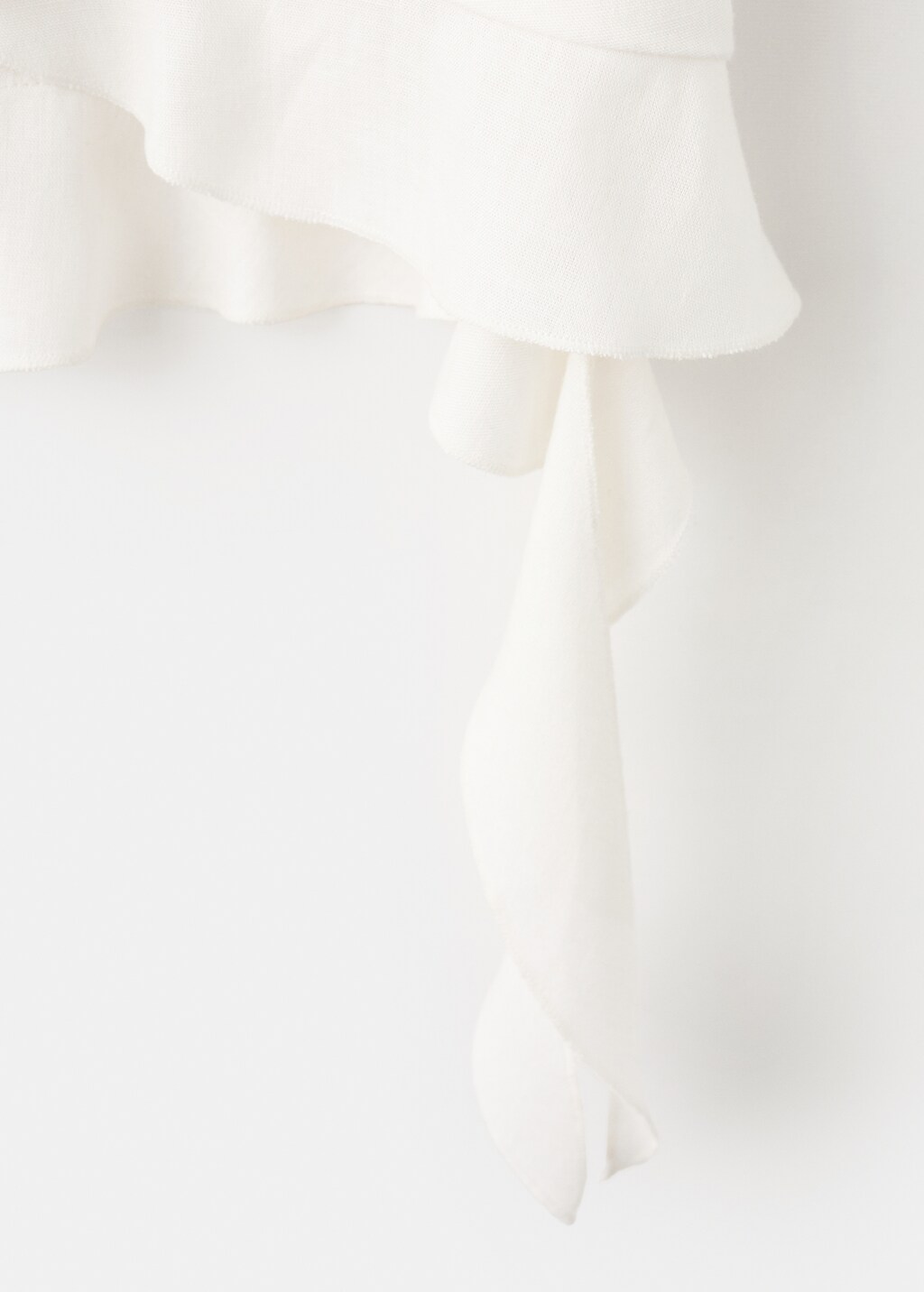 Tejido mezcla de lino. Tejido fluido. Escote de pico. Tirantes finos. Detalle de volantes.
