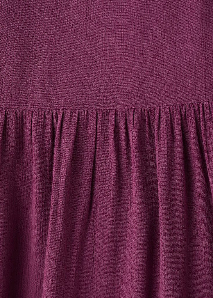 Tejido 100% algodón. Tejido fluido. Diseño recto. Diseño largo. Panel nido de abeja. Volantes en el bajo. Forro interior