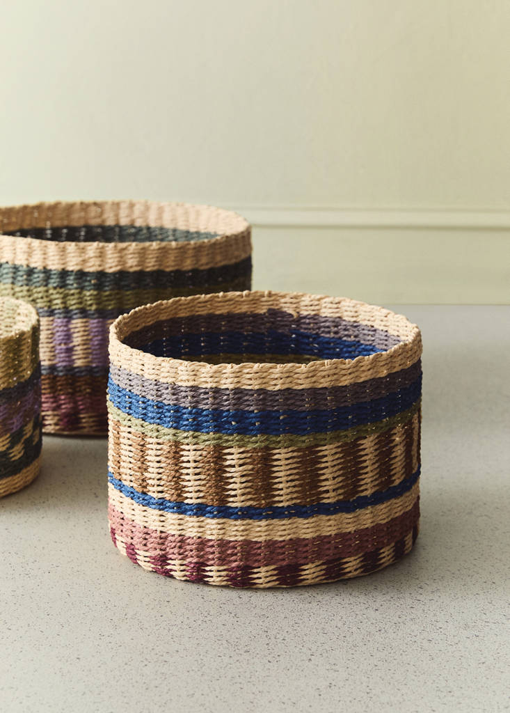 Medium multicoloured patterned circular basketCurrent price [22.99 € ]22.99 €Select a colourPurpleSelect your sizeSLast few items!MLNot available. I want it!SizeChoose your sizeAddAdd to your wishlistSee lookFree delivery to store100% paper. Diameter: 26.5 cm. Height: 18 cm. Circular design. Printed design. Without handles. Ideal for storage or as a decorative objectDetails, composition and careStore availability