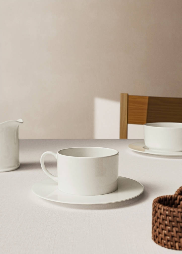 100% bone china porcelain. Mug: diameter 12 cm and height 9 cm. Plate: diameter 17 cm and height 1 cm. Bone china porcelain stands out for its high quality and resistance to high temperatures. Its white colour and classic minimalist design make it perfect for all meals and occasions.. Coordinates with more products from the collection. Microwave and dishwasher safe. Coffee cup and saucer included