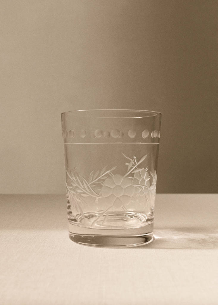 100% glass. Size: 10x8.3 cm. Flower detail in relief. Decorate your table with a special touch. Coordinates with more products from the collection