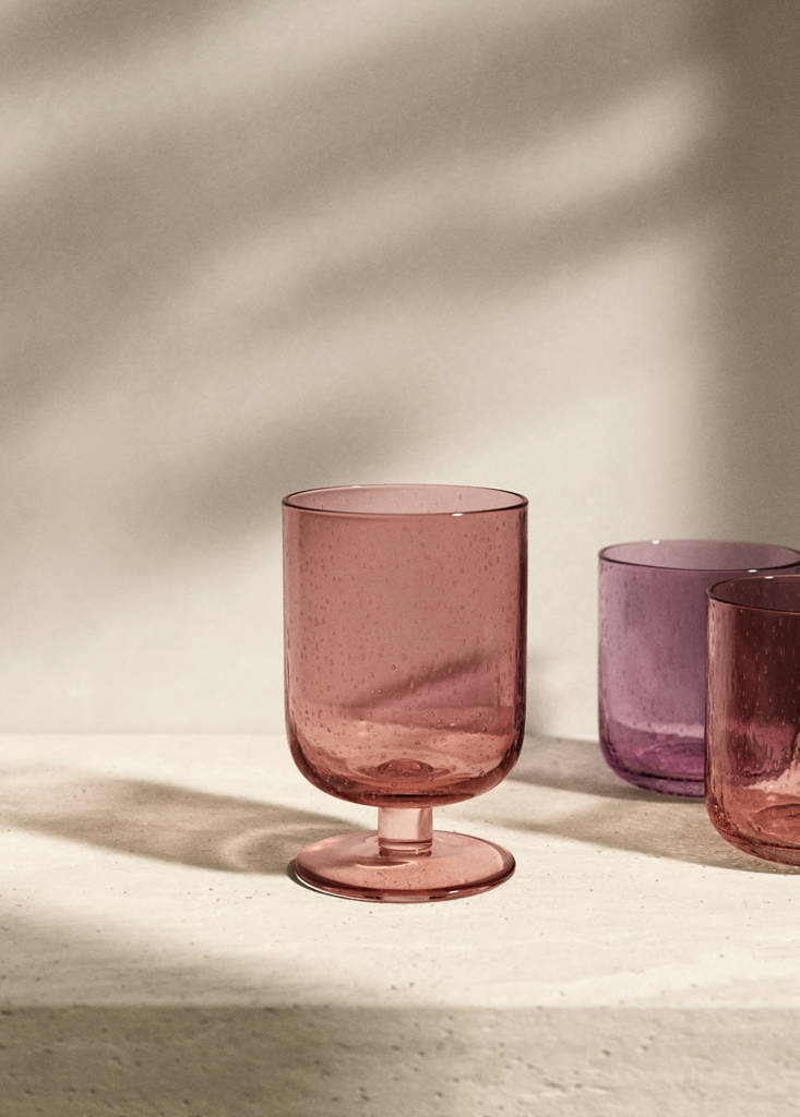 100% glass. Diameter: 8cm. Height: 12.5 cm. Capacity: 260 ml. Bubble detail. These bubbles, of varying sizes, are distributed unevenly across the glass, creating a visually rich and complex texture. Cylindrical shape. Adds a colourful and original touch to your table on any occasion. Available in various colours that can be combined with each other. Dishwasher safe