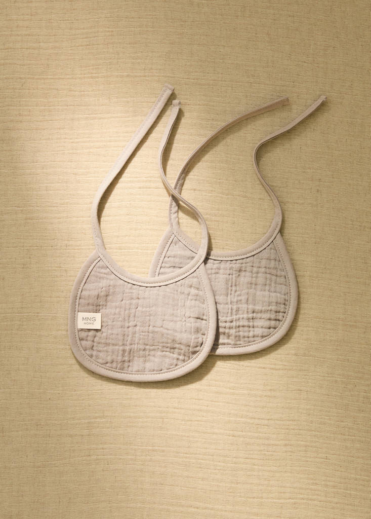 Made in Portugal / 2 PACKCotton gauze bibInitial price struck through [12.99 € ]12.99 €Current price [6.99 € ]6.99 €-46%Select a colourGreySelect your sizeOne sizeNot available. I want it!Notify meAdd to WishlistSee lookFree delivery to storePack of 2. 100% Cotton. Terrycloth fabric. Round bib collar. Adjustable tie closure. Available in two colours. Coordinates with more products from the collectionDetails, composition and careStore availability
