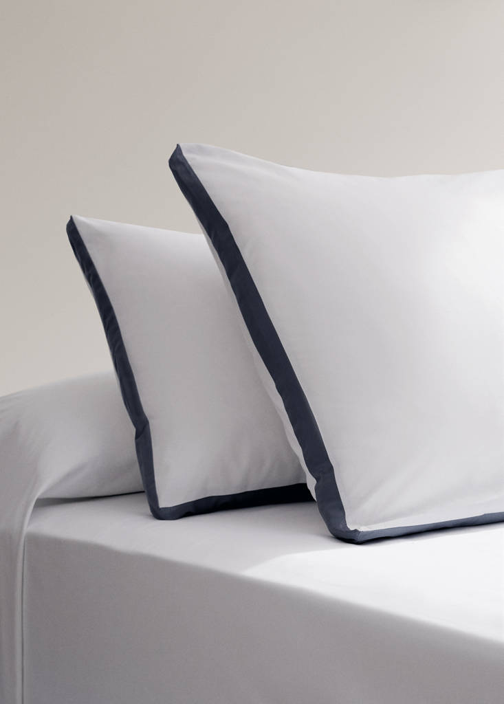 Two 200-thread count cotton percale pillowcases with satin edges 60x60cm
