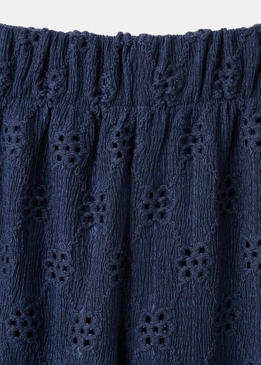 Straight design. Embroidered details. Long design. Adjustable Elastic Waistband.