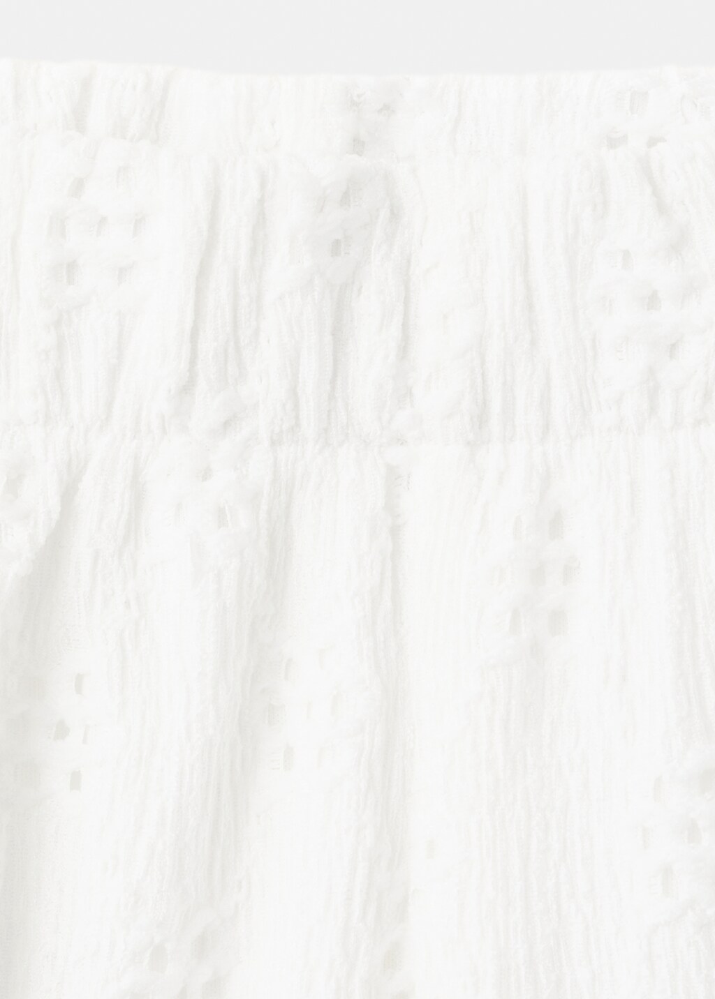 Fluid fabric. Straight design. Long design. Embroidered details. Elasticated waist.