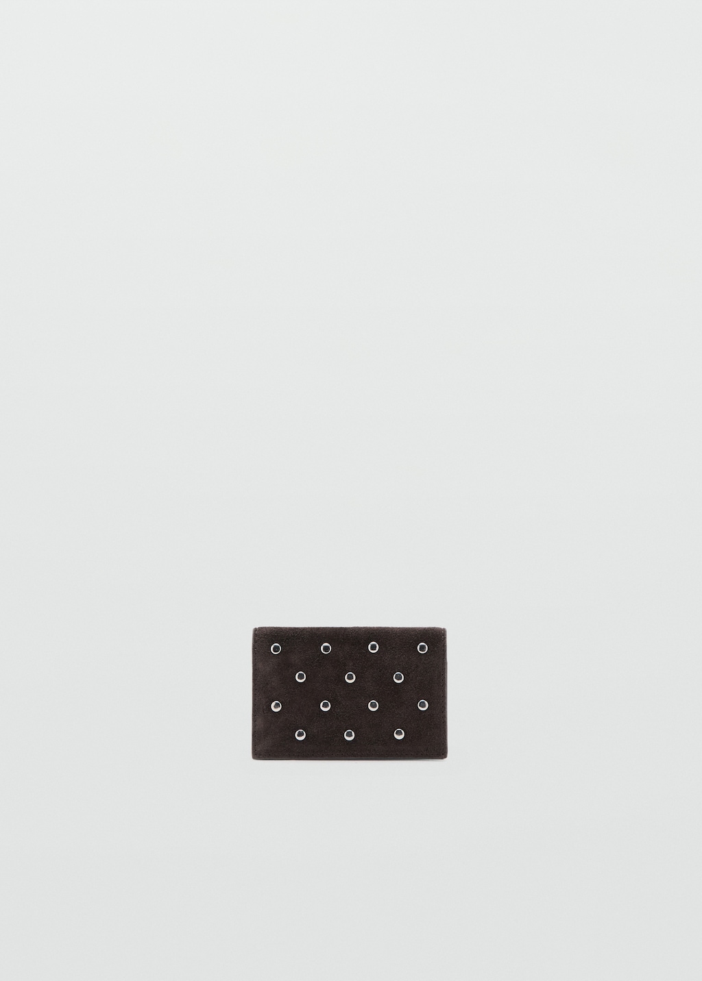100% bovine leather. Suede. Stud detail. Four card slots. No Fastening. The grey colour is exclusive online.