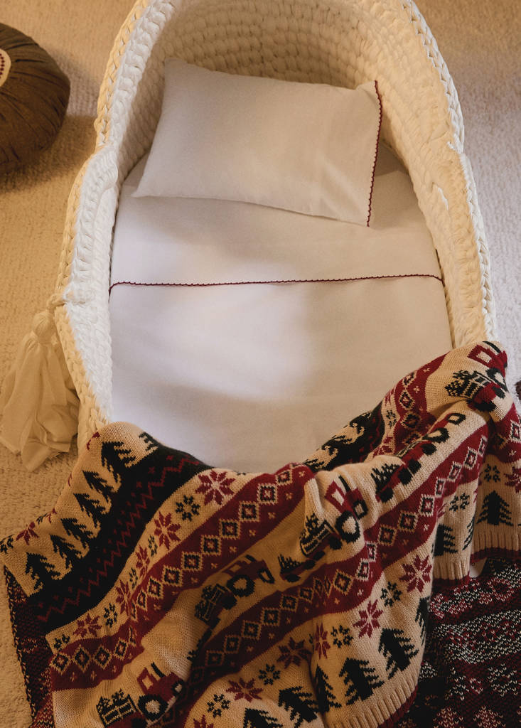 100 % pamučni perkal. Veličina: 75 x 100 cm + 20 x 30. 200 pamučnih niti koje pružaju maksimalnu mekoću, otpornost i prozračnost, pružajući osjećaj laganog dodira. Ovaj Božić darujte najmlađima komplet od pamučnog perkala i dodajte njihovim sobama suptilan, nježan i božićni ugođaj tijekom ovih blagdana. Kombinirajte s više proizvoda iz kolekcije. Božićna kolekcija