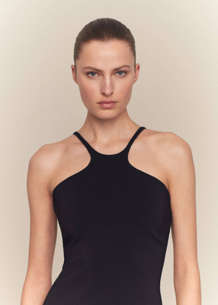 Oživljavamo haljinu vaših snova: spektakularni odjevni predmet s više pozicija uz koji možete nositi klasičnu malu crnu haljinu ili uključiti njegovu poluprozirnu suknju s metalnim brošem u obliku lista. Poluprozirna tkanina. Kratki dizajn. Dizajn lista. Halter ovratnik. Bez rukava. Tanke naramenice. Skriveni bočni patentni zatvarač. Multiway. Metalna igla. Kolekcija za zabave, ceremonije i pričesti. Artikle iz kolekcije CAPSULE možete zamijeniti ili vratiti unutar 14 dana od datuma isporuke. Uzak kroj